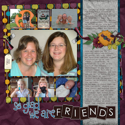 I've done lots of scrapping in the last couple of months, and probably won't post everything here on the blog, but I had to post this one. When I was creating this page, I literally could NOT stop smiling, remembering how great it was to spend a few days with my dear friend Sarah and her family last summer. What's not to love? We reminisced about our college years, we grilled at the beach, we just enjoyed our time together.